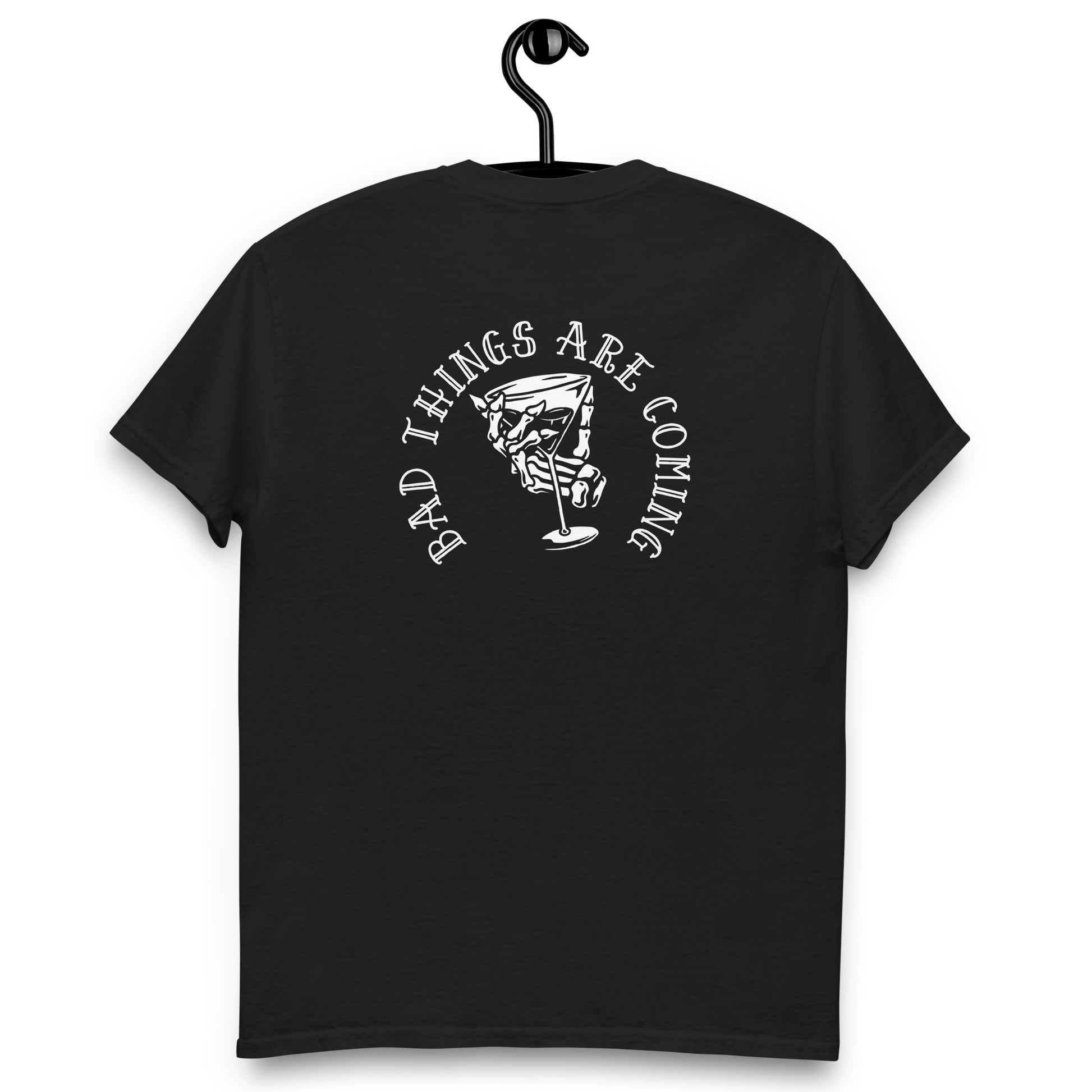 Heavyweight 100% cotton unisex 'Bad Things' Backprint T-shirt with Cad Things logo front print and Bad Things back print.