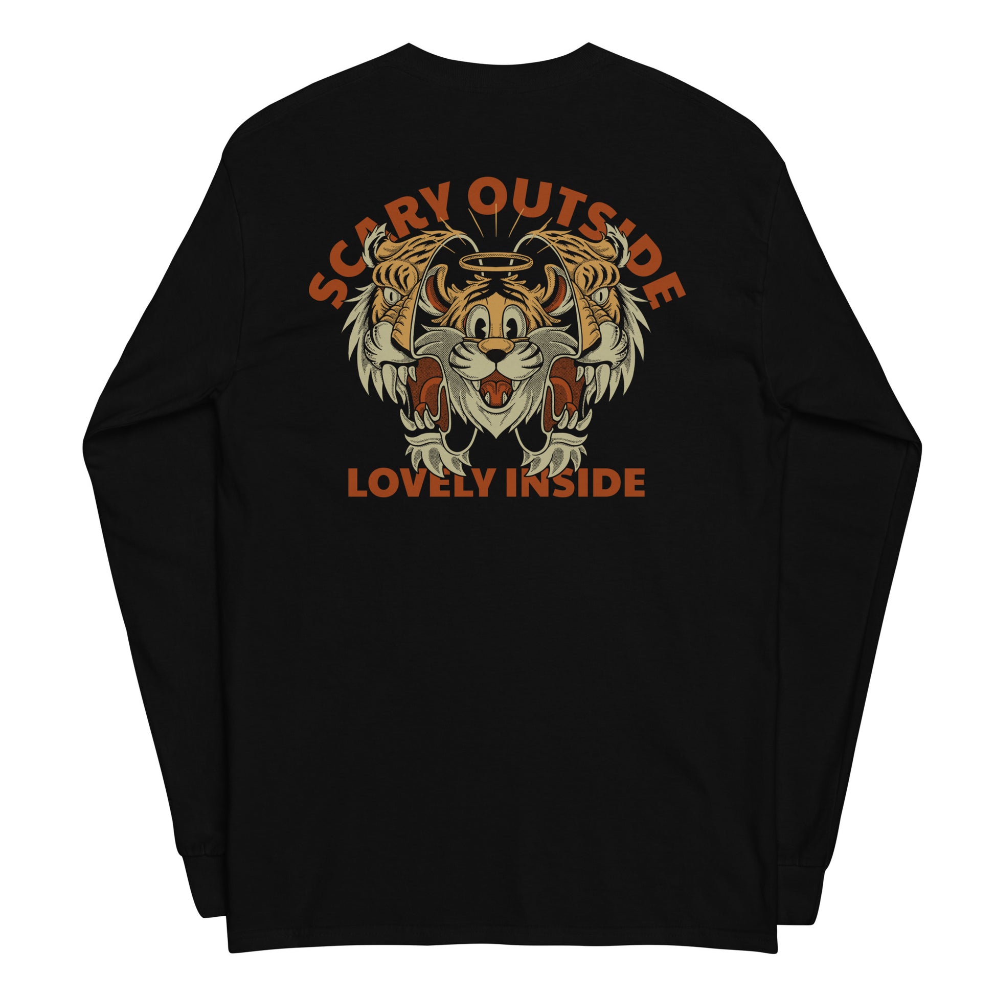 Heavyweight 100% cotton unisex 'Hidden' Backprint Long Sleeve T-shirt with Cursed Hidden logo front print and Hidden back print.