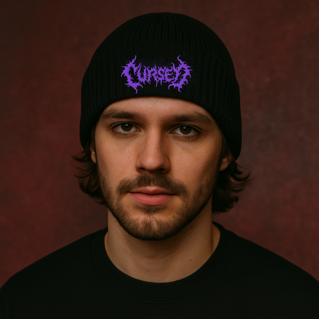 This unisex beanie features the bold word "Cursed" in a bright purple metalcore font—perfect for those who live and breathe the wild spirit of metalcore.