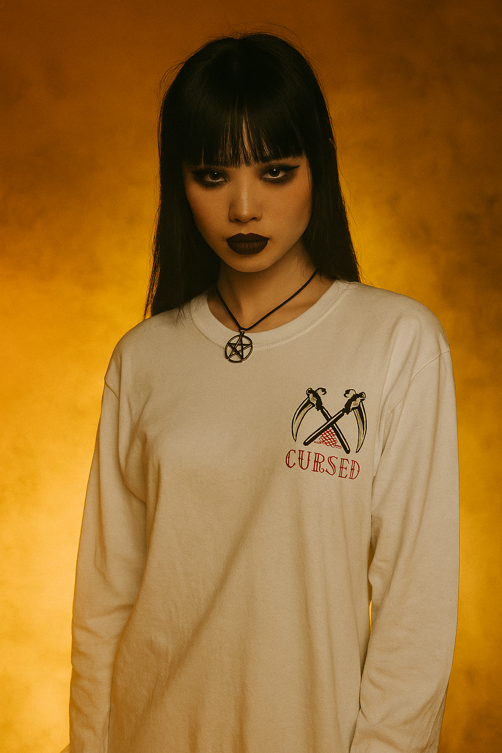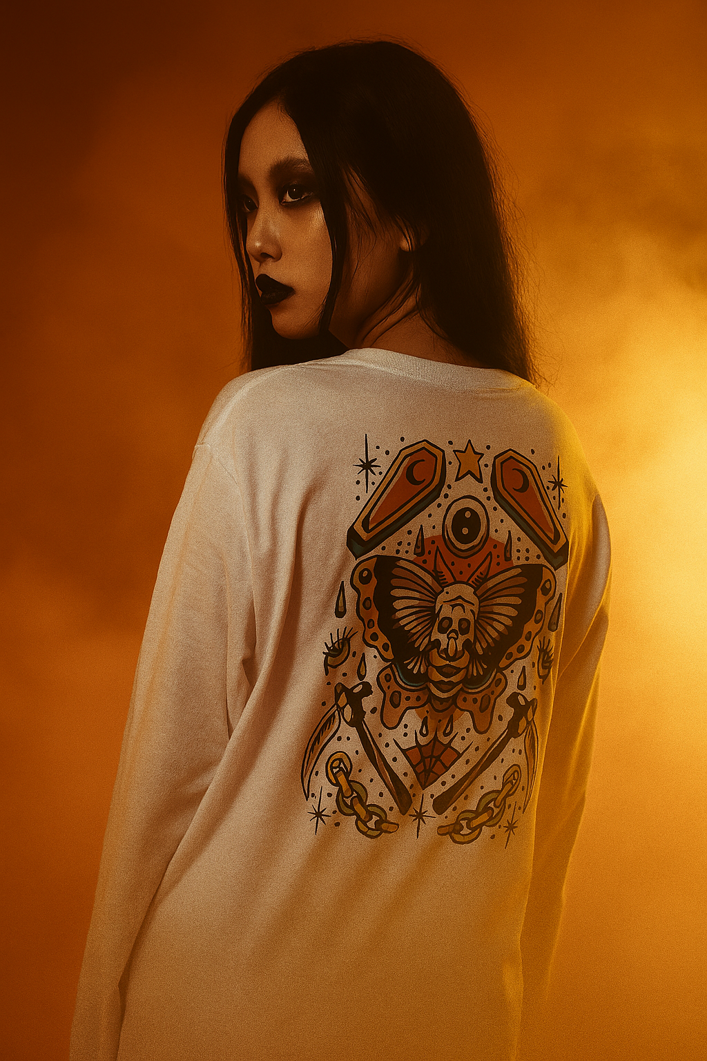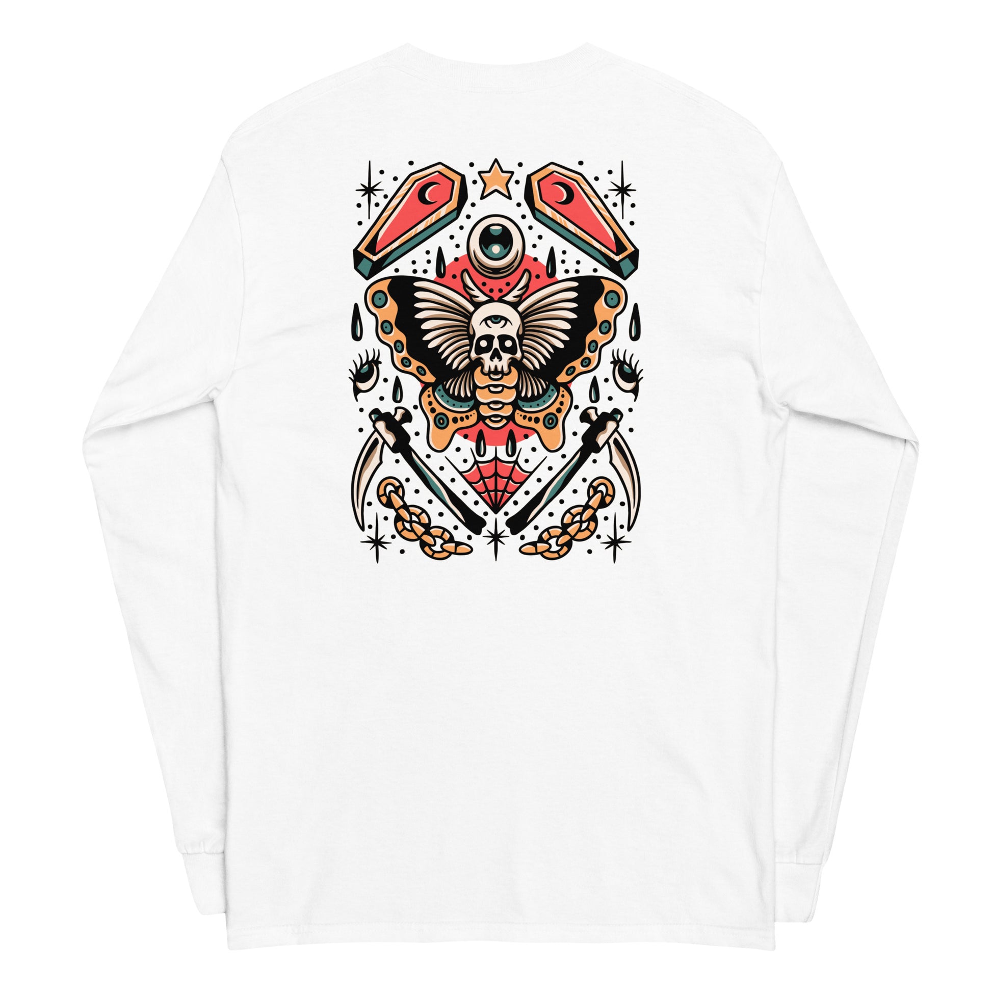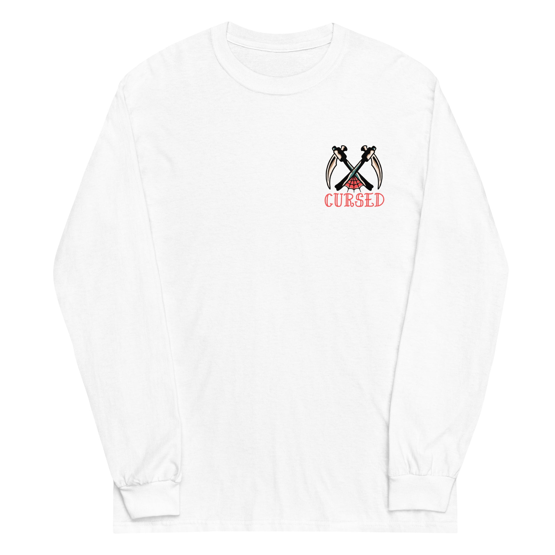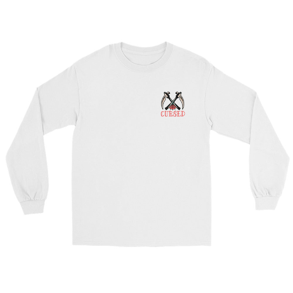 Heavyweight 100% cotton unisex 'Tattoo' Backprint Long Sleeve T-shirt with Cursed Tattoo logo front print and Tattoo back print.